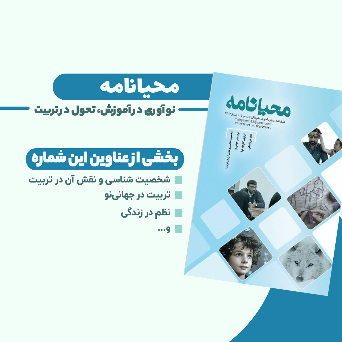 محیانامه – شماره یازدهم یازدهمین شماره از فصلنامه «تعلیموتربیت، زن و خانواده» با محوریت هویت، تربیت و نقش خانواده در…