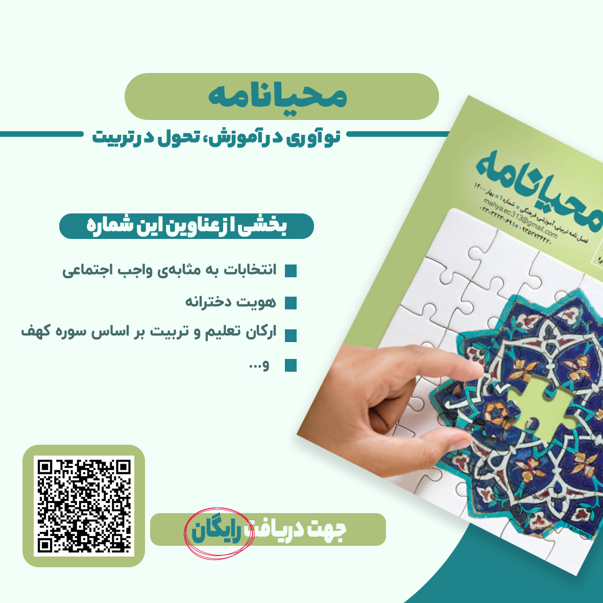 محیانامه شماره ۰۲| رایگان محیانامه، فصلنامه‌ای تخصصی در حوزه تربیت، زن و خانواده است که با رویکردی ایرانی–اسلامی به مسائل…
