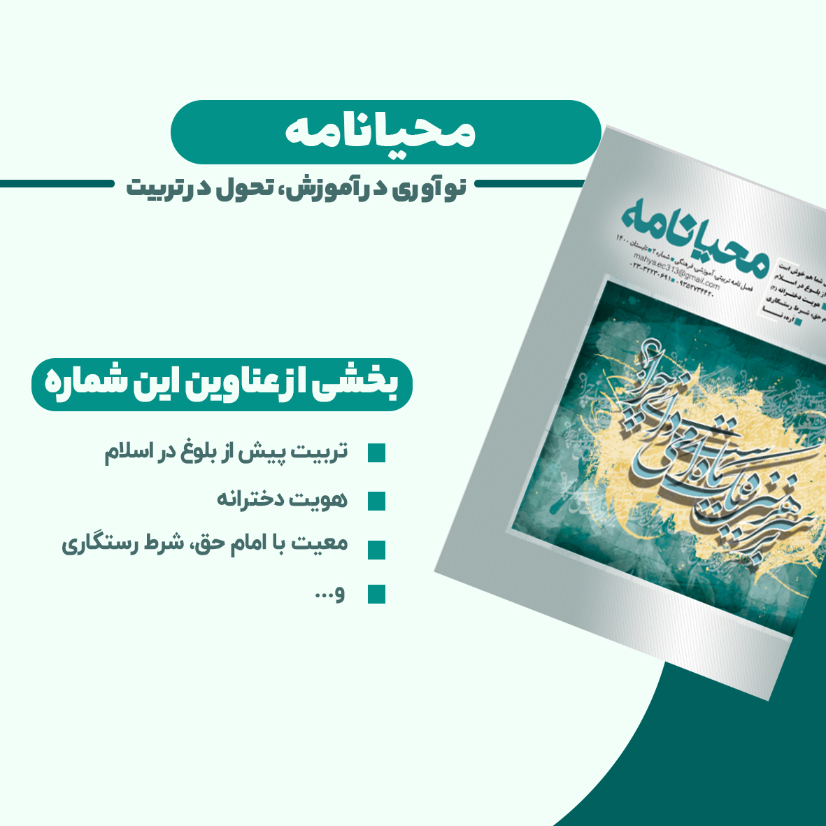 محیانامه شماره ۲ مجموعهای از مقالات تحلیلی و تربیتی است که به والدین، مربیان و فعالان حوزه تربیت کمک میکند نگاه دقیقتر و مسئولانهتری به تربیت فرزندان داشته باشند.