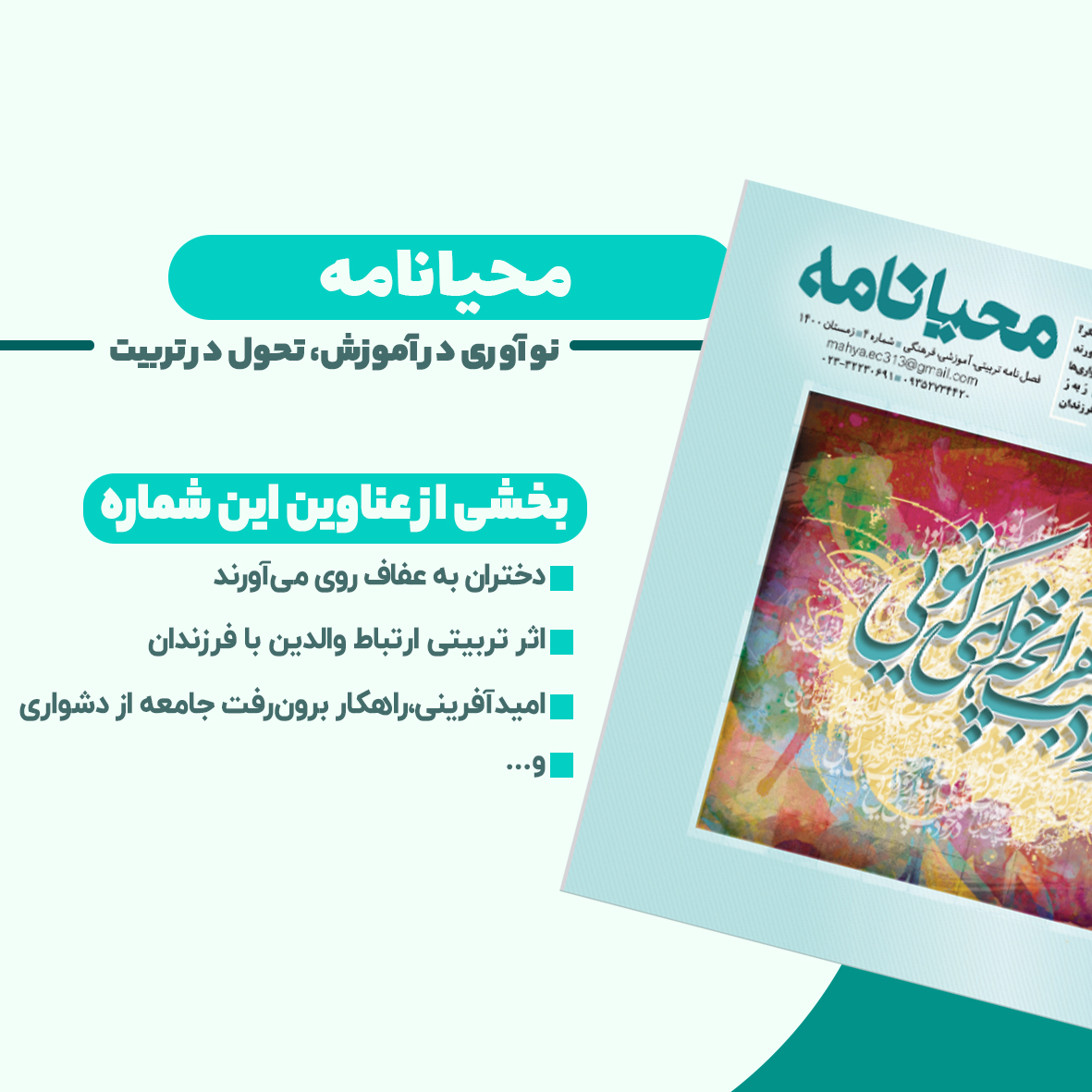 محیانامه – شماره ششم ششمین شماره از فصلنامه «تعلیموتربیت، زن و خانواده» با تمرکز بر نقش معلم، تربیت دختران و…