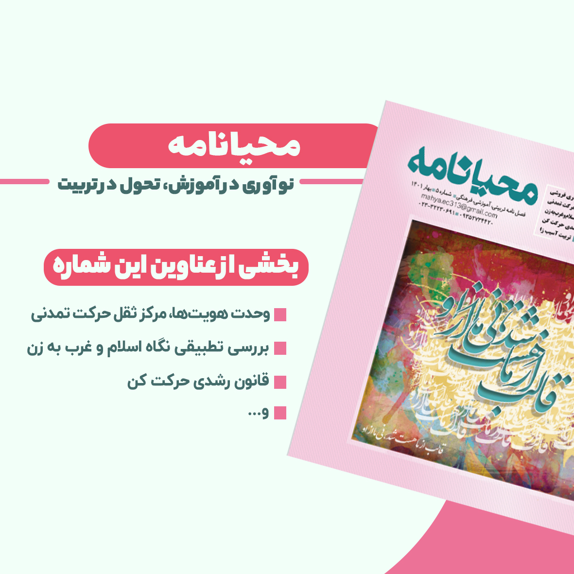 محیانامه – شماره دو دومین شماره از فصلنامه «تعلیموتربیت، زن و خانواده» با تمرکز بر مبانی هویتی و تربیتی در…