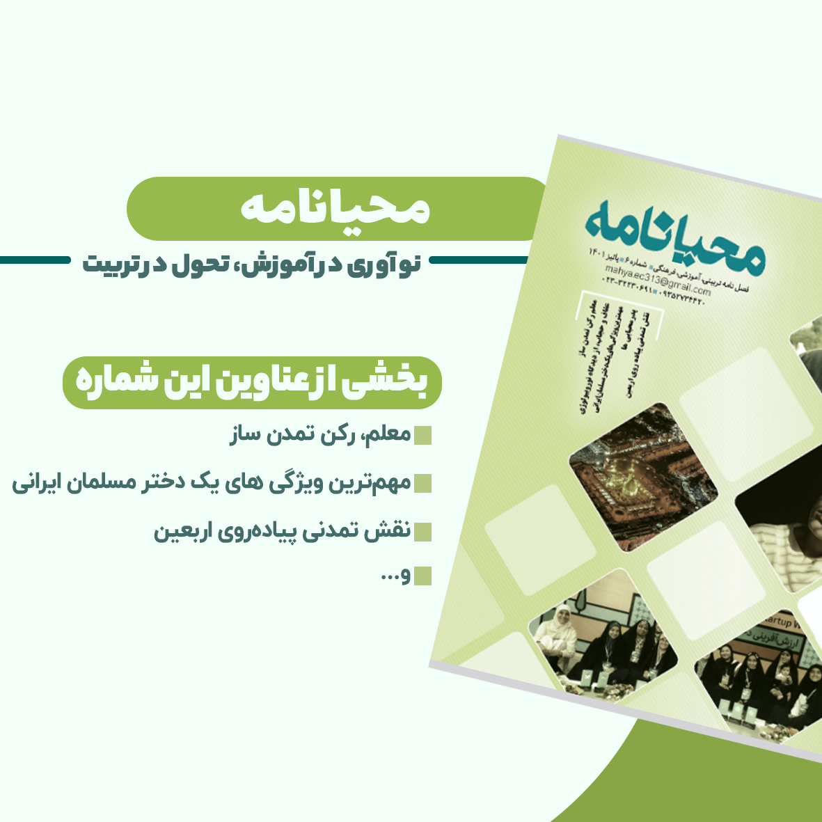 محیانامه – شماره پنجم پنجمین شماره از فصلنامه «تعلیموتربیت، زن و خانواده» با محوریت هویت، نقش زن در جامعه و…