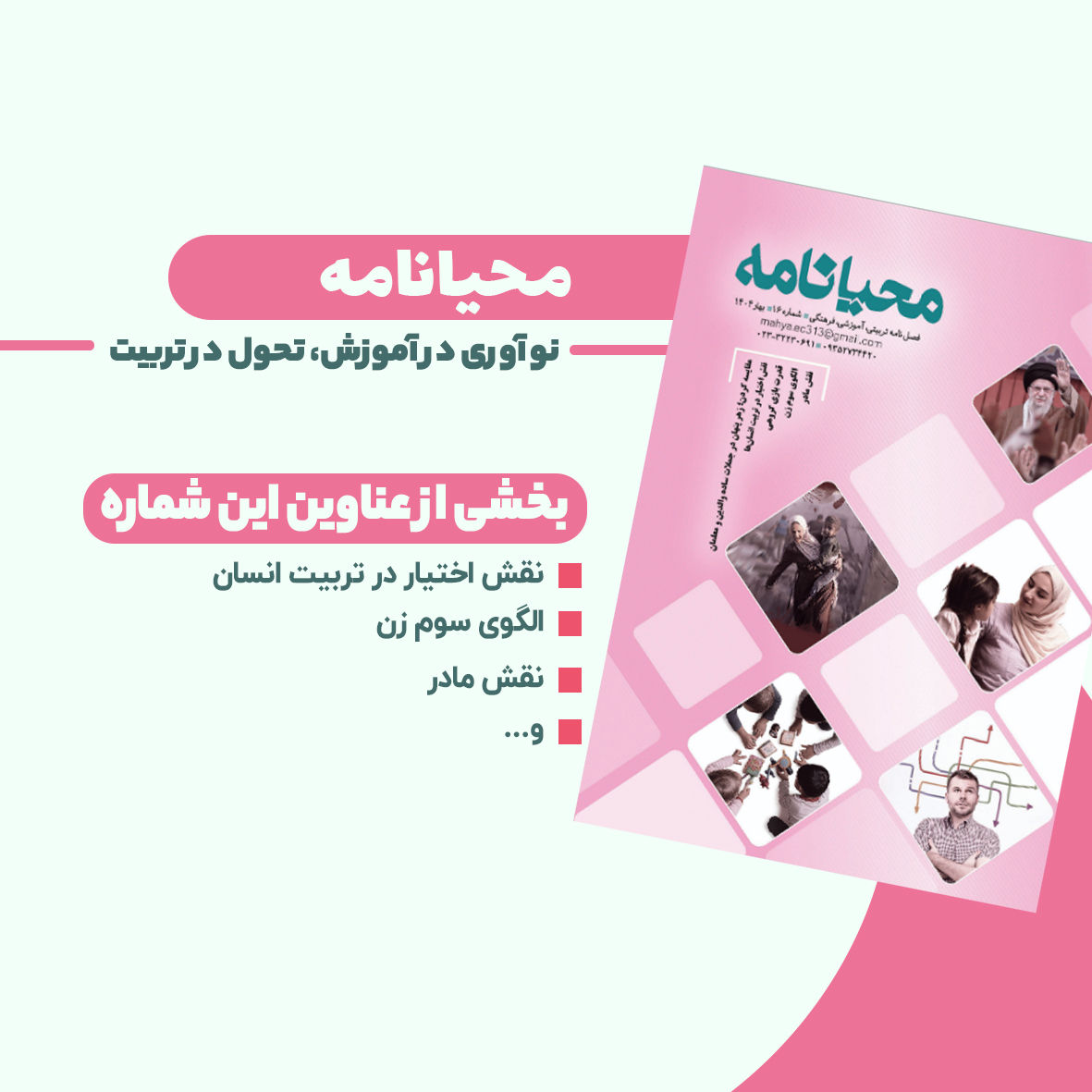 محیانامه – شماره دوازدهم دوازدهمین شماره از فصلنامه «تعلیموتربیت، زن و خانواده» با محوریت تربیت، تعلیم نفس و راهکارهای موفقیت…